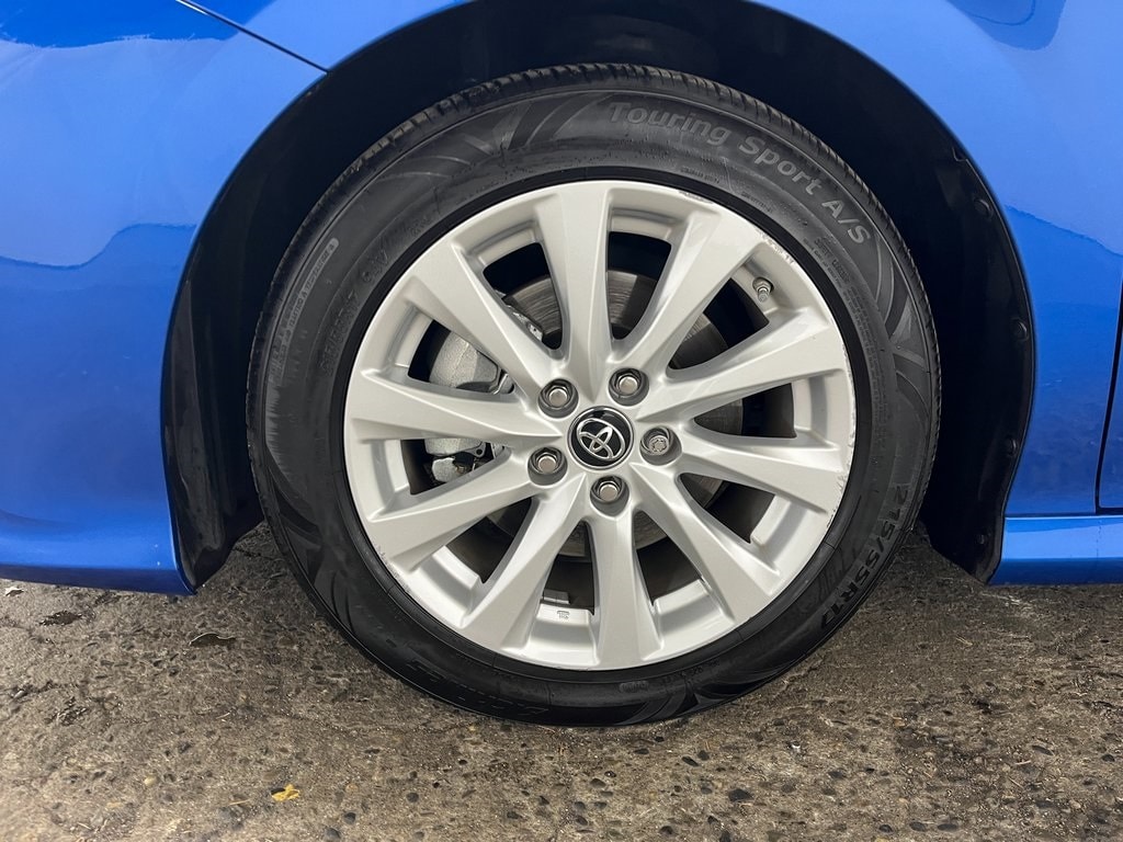 Black Cloth, 4-Wheel Disc Brakes, 6 Speakers, 7.5J x 17" Alloy Wheels, ABS brakes, Air Conditioning, All-Weather Floor Liner Package, Alloy Wheel Locks, Alloy wheels, AM/FM radio, Apple CarPlay, Auto High-beam Headlights, Brake assist, Bumpers: body-color, Delay-off headlights, Door Edge Guards, Driver door bin, Driver vanity mirror, Dual front impact airbags, Dual front side impact airbags, Electronic Stability Control, Emergency communication system: Safety Connect, Exterior Parking Camera Rear, Fabric Seat Trim, Four wheel independent suspension, Front anti-roll bar, Front Bucket Seats, Front Center Armrest, Front reading lights, Fully automatic headlights, Illuminated entry, Knee airbag, Low tire pressure warning, Occupant sensing airbag, Outside temperature display, Overhead airbag, Overhead console, Panic alarm, Passenger door bin, Passenger vanity mirror, Power door mirrors, Power driver seat, Power steering, Power windows, Radio data system, Radio: Entune 3.0 Audio Plus w/App Suite, Radio: Entune 3.0 Audio w/App Suite, Rear anti-roll bar, Rear Bumper Applique (Clear), Rear reading lights, Rear seat center armrest, Rear side impact airbag, Rear window defroster, Remote keyless entry, Security system, Speed control, Speed-sensing steering, Split folding rear seat, Steering wheel mounted audio controls, Tachometer, Telescoping steering wheel, Tilt steering wheel, Traction control, Trip computer, Variably intermittent wipers, Black Cloth. Features: 2019 Toyota Camry LE Blue Streak FWD 2.5L I4 DOHC 16V 8-Speed Automatic