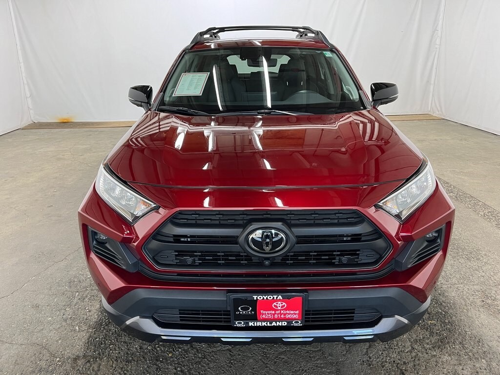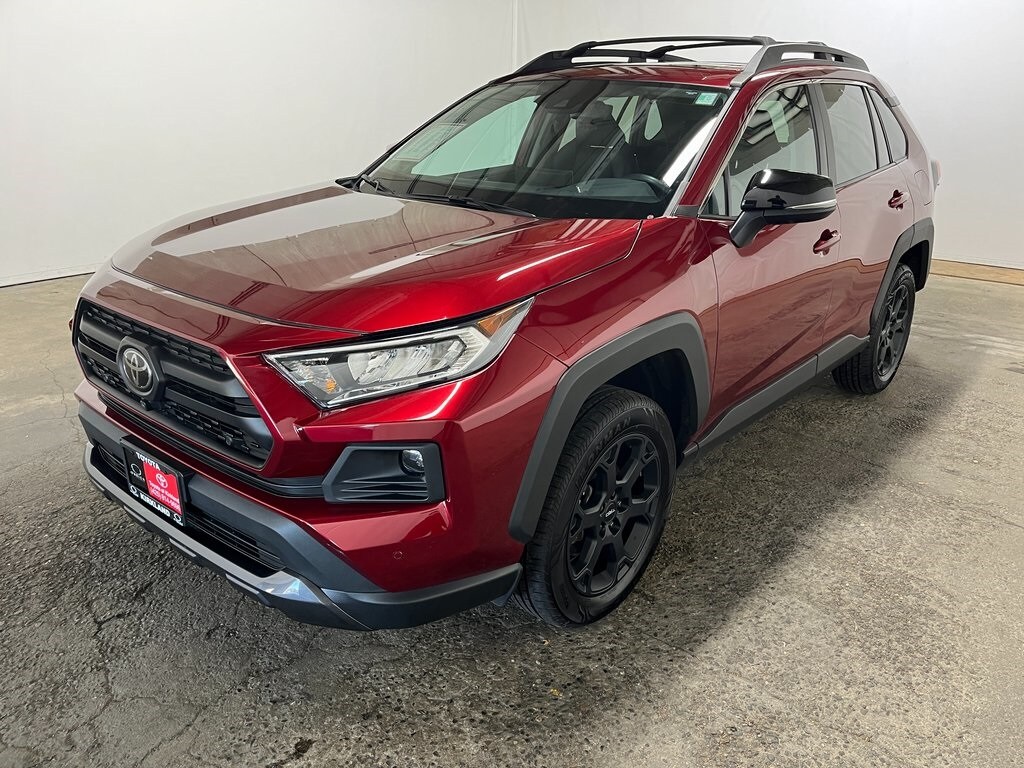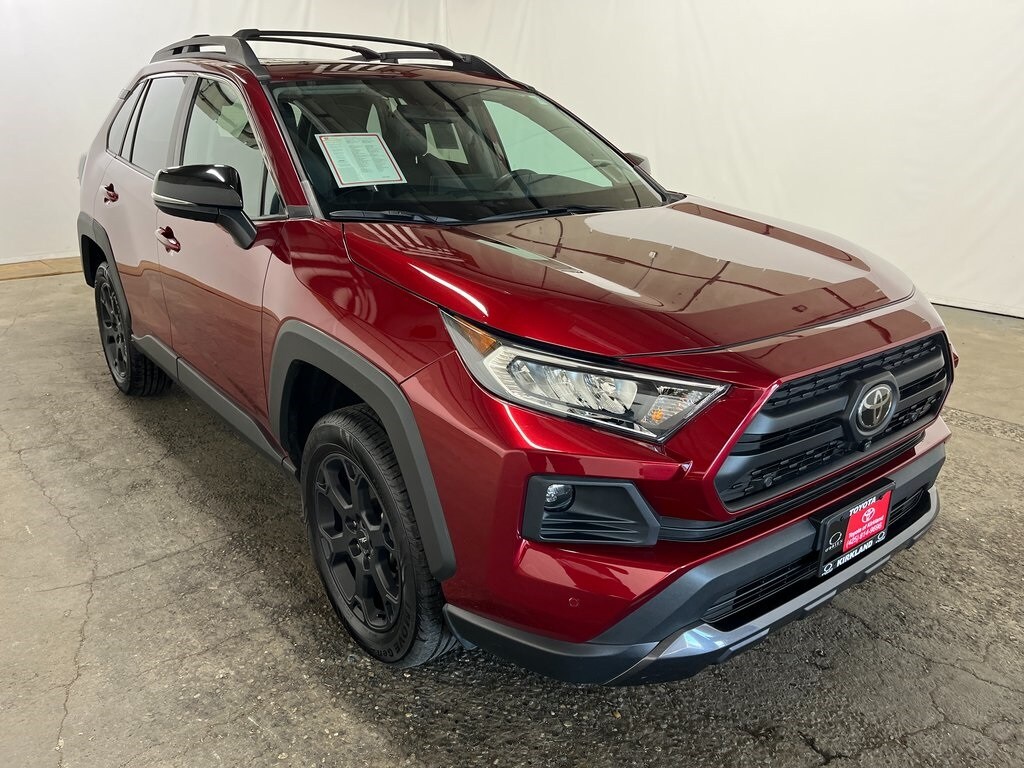 Toyota Gold Certified Certified, AWD, Black, 3 Spoke Leather Heated Steering Wheel, 4-Wheel Disc Brakes, 6 Speakers, ABS brakes, Air Conditioning, All Weather Floor Mats w/Cargo Tray, Alloy wheels, AM/FM radio: SiriusXM, Anti-Theft System, Apple CarPlay/Android Auto, Auto High-beam Headlights, Automatic temperature control, Axle Ratio: 3.177, Blind Spot Monitor, Brake assist, Bumpers: body-color, Delay-off headlights, Digital Rearview Mirror w/HomeLink, Driver door bin, Driver vanity mirror, Dual front impact airbags, Dual front side impact airbags, Electronic Stability Control, Emergency communication system: Entune Safety Connect, Exterior Parking Camera Rear, Four wheel independent suspension, Front & Rear Parking Assist w/Automated Braking, Front anti-roll bar, Front Bucket Seats, Front Center Armrest, Front Door Smart Key System w/Push Button Start, Front dual zone A/C, Front fog lights, Front LED Fog & Driving Lamp, Front reading lights, Front Seat Heating/Ventilation, Fully automatic headlights, Heated door mirrors, Illuminated entry, Intelligence Clearance & Back Sonar, Knee airbag, Low tire pressure warning, Occupant sensing airbag, Outside temperature display, Overhead airbag, Overhead console, Panic alarm, Panoramic View Monitor, Passenger door bin, Passenger vanity mirror, Power door mirrors, Power driver seat, Power Liftgate, Power moonroof, Power steering, Power windows, Radio data system, Radio: Audio Plus, Radio: Premium Audio w/Dynamic Nav & JBL, Rain Sensing Front Wipers, Rear anti-roll bar, Rear seat center armrest, Rear window defroster, Rear window wiper, Remote keyless entry, Roof Rack Cross Bars, Roof rack: rails only, Security system, SofTex TRD Off Road Seat Trim, Speed control, Speed-sensing steering, Split folding rear seat, Spoiler, Steering wheel mounted audio controls, Tachometer, Telescoping steering wheel, Tilt & Slide Moon Roof, Tilt steering wheel, Traction control, TRD Off-Road Grade Technology Package, TRD Off-Road Package, TRD Off-Road Weather Package, Trip computer, Turn signal indicator mirrors, Variably intermittent wipers, Wheels: 18" 6-Spoke Matte-Black Alloy, Wiper/Windshield Deicer, Wireless Phone Charger, AWD, Black. Features: 2020 Toyota RAV4 TRD Off Road Ruby Flare Pearl AWD 2.5L 4-Cylinder DOHC Dual VVT-i 8-Speed Automatic