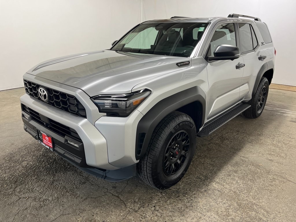 Toyota Gold Certified Certified, 2.4L I4 FI Hybrid Turbocharged DOHC 16V, 15 Speakers, 4-Wheel Disc Brakes, 4Runner All Weather Cargo Tray (TMS), 4Runner All Weather Floor Mats (TMS), ABS brakes, Accessory Ready LED Lantern (TMS), Air Conditioning, Alloy wheels, AM/FM radio: SiriusXM, Anti-whiplash front head restraints, Apple CarPlay/Android Auto, Auto High-beam Headlights, Automatic temperature control, Brake assist, Bumpers: body-color, Driver door bin, Driver vanity mirror, Dual front impact airbags, Dual front side impact airbags, Electronic Stability Control, Emergency communication system: Safety Connect (1-year trial), Exterior Parking Camera Rear, Front anti-roll bar, Front Bucket Seats, Front Center Armrest, Front dual zone A/C, Front fog lights, Front reading lights, Front wheel independent suspension, Heated & Ventilated Front Bucket Seats, Heated door mirrors, Illuminated entry, Intelligent Inside Rear View Mirror, Interior D-Pillar Cargo Lights (TMS), Knee airbag, Leather Shift Knob, Leather steering wheel, Low tire pressure warning, Memory seat, Moonroof, Navigation System, Occupant sensing airbag, Outside temperature display, Overhead airbag, Overhead console, Panic alarm, Passenger door bin, Passenger vanity mirror, Power door mirrors, Power driver seat, Power passenger seat, Power steering, Power windows, Prewired Auxiliary Switches, Radio: 14" Audio, Rear anti-roll bar, Rear seat center armrest, Rear side impact airbag, Rear window defroster, Rear window wiper, Remote keyless entry, Retractable Black Cargo Cover (TMS), Security system, SofTex Seat Trim, Speed control, Speed-sensing steering, Split folding rear seat, Spoiler, Steering wheel mounted audio controls, Tachometer, Telescoping steering wheel, Tilt steering wheel, Traction control, TRD Offroad Premium Package, Trip computer, Variably intermittent wipers, Wheels: 18" Accessory TRD Black (TMS), Wheels: 18" Matte-Black Painted Alloy, 2.4L I4 FI Hybrid Turbocharged DOHC 16V. Features: 2025 Toyota 4Runner i-FORCE MAX Hybrid TRD Off Road Premium Cutting Edge 4WD 2.4L I4 FI Hybrid Turbocharged DOHC 16V 8-Speed Automatic