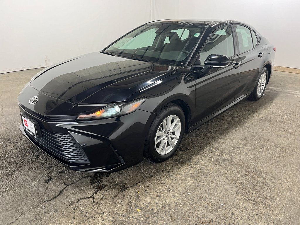Toyota Certified Used Hybrids Certified, 2.5L 4-Cylinder 16V DOHC, Black Cloth, 4-Wheel Disc Brakes, 6 Speakers, ABS brakes, Air Conditioning, Alloy wheels, AM/FM radio: SiriusXM, Apple CarPlay/Android Auto, Auto High-beam Headlights, Automatic temperature control, Brake assist, Bumpers: body-color, Delay-off headlights, Driver door bin, Driver vanity mirror, Dual front impact airbags, Dual front side impact airbags, Electronic Stability Control, Emergency communication system: Safety Connect (up to 10-year trial subscription), Exterior Parking Camera Rear, Fabric Seat Trim, Four wheel independent suspension, Front anti-roll bar, Front Bucket Seats, Front Center Armrest, Front dual zone A/C, Front reading lights, Fully automatic headlights, Heated door mirrors, Illuminated entry, Knee airbag, Low tire pressure warning, Occupant sensing airbag, Outside temperature display, Overhead airbag, Overhead console, Panic alarm, Passenger door bin, Passenger vanity mirror, Power door mirrors, Power steering, Power windows, Radio data system, Radio: Toyota Audio Multimedia w/8" Touchscreen, Rear anti-roll bar, Rear seat center armrest, Rear side impact airbag, Rear window defroster, Remote keyless entry, Security system, Speed control, Speed-sensing steering, Split folding rear seat, Steering wheel mounted audio controls, Telescoping steering wheel, Tilt steering wheel, Traction control, Trip computer, Turn signal indicator mirrors, Variably intermittent wipers, Wheels: 16" Silver-Finished Alloy, 2.5L 4-Cylinder 16V DOHC, Black Cloth. Features: 2025 Toyota Camry LE Midnight Black FWD 2.5L 4-Cylinder 16V DOHC eCVT