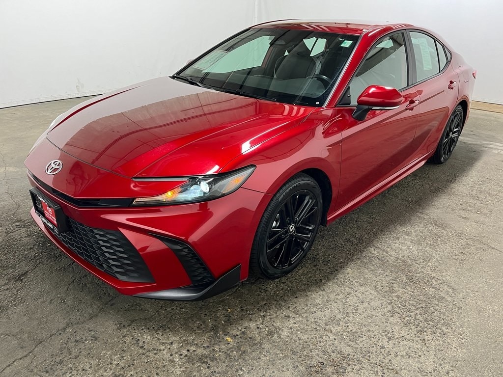 Toyota Gold Certified Certified, 2.5L 4-Cylinder 16V DOHC, Black Cloth, 4-Wheel Disc Brakes, 6 Speakers, ABS brakes, Air Conditioning, Alloy wheels, AM/FM radio: SiriusXM, Apple CarPlay/Android Auto, Auto High-beam Headlights, Automatic temperature control, Brake assist, Bumpers: body-color, Delay-off headlights, Driver door bin, Driver vanity mirror, Dual front impact airbags, Dual front side impact airbags, Electronic Stability Control, Emergency communication system: Safety Connect (up to 10-year trial subscription), Exterior Parking Camera Rear, Four wheel independent suspension, Front anti-roll bar, Front Bucket Seats, Front Center Armrest, Front dual zone A/C, Front reading lights, Fully automatic headlights, Heated door mirrors, Illuminated entry, Knee airbag, Leather Shift Knob, Leather steering wheel, Low tire pressure warning, Occupant sensing airbag, Outside temperature display, Overhead airbag, Overhead console, Panic alarm, Passenger door bin, Passenger vanity mirror, Power door mirrors, Power driver seat, Power steering, Power windows, Radio data system, Radio: Toyota Audio Multimedia w/12.3" Touchscreen, Radio: Toyota Audio Multimedia w/8" Touchscreen, Rear anti-roll bar, Rear reading lights, Rear seat center armrest, Rear side impact airbag, Rear window defroster, Remote keyless entry, Security system, SofTex & Fabric Seat Trim, Speed control, Speed-sensing steering, Split folding rear seat, Spoiler, Steering wheel mounted audio controls, Telescoping steering wheel, Tilt steering wheel, Traction control, Trip computer, Turn signal indicator mirrors, Variably intermittent wipers, Wheels: 18" Black-Finished Alloy, 2.5L 4-Cylinder 16V DOHC, Black Cloth. Priced below KBB Fair Purchase Price! Features: 2025 Toyota Camry SE Red FWD 2.5L 4-Cylinder 16V DOHC eCVT