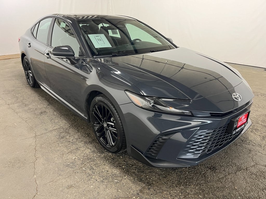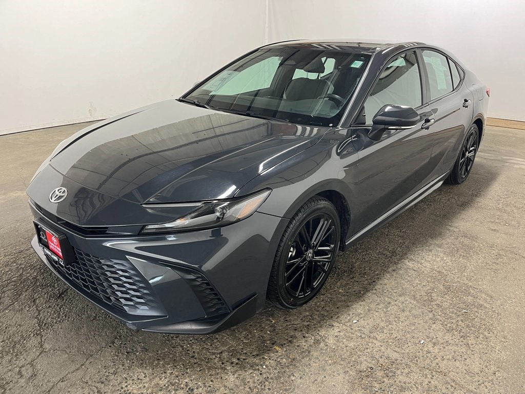 2.5L 4-Cylinder 16V DOHC, Black Cloth, 4-Wheel Disc Brakes, 6 Speakers, ABS brakes, Air Conditioning, Alloy wheels, AM/FM radio: SiriusXM, Apple CarPlay/Android Auto, Auto High-beam Headlights, Automatic temperature control, Brake assist, Bumpers: body-color, Delay-off headlights, Driver door bin, Driver vanity mirror, Dual front impact airbags, Dual front side impact airbags, Electronic Stability Control, Emergency communication system: Safety Connect (up to 10-year trial subscription), Exterior Parking Camera Rear, Four wheel independent suspension, Front anti-roll bar, Front Bucket Seats, Front Center Armrest, Front dual zone A/C, Front reading lights, Fully automatic headlights, Heated door mirrors, Illuminated entry, Knee airbag, Leather Shift Knob, Leather steering wheel, Low tire pressure warning, Occupant sensing airbag, Outside temperature display, Overhead airbag, Overhead console, Panic alarm, Passenger door bin, Passenger vanity mirror, Power door mirrors, Power driver seat, Power steering, Power windows, Radio data system, Radio: Toyota Audio Multimedia w/12.3" Touchscreen, Radio: Toyota Audio Multimedia w/8" Touchscreen, Rear anti-roll bar, Rear reading lights, Rear seat center armrest, Rear side impact airbag, Rear window defroster, Remote keyless entry, Security system, SofTex & Fabric Seat Trim, Speed control, Speed-sensing steering, Split folding rear seat, Spoiler, Steering wheel mounted audio controls, Telescoping steering wheel, Tilt steering wheel, Traction control, Trip computer, Turn signal indicator mirrors, Variably intermittent wipers, Wheels: 18" Black-Finished Alloy, 2.5L 4-Cylinder 16V DOHC, Black Cloth. Features: 2025 Toyota Camry SE Underground FWD 2.5L 4-Cylinder 16V DOHC eCVT