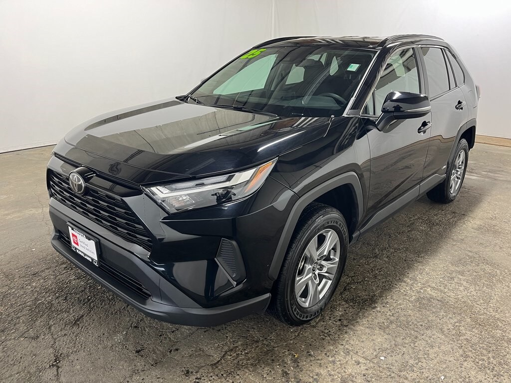2.5L 4-Cylinder, 4-Wheel Disc Brakes, 6 Speakers, ABS brakes, Air Conditioning, Alloy wheels, AM/FM radio: SiriusXM, Auto High-beam Headlights, Automatic temperature control, Brake assist, Bumpers: body-color, Delay-off headlights, Driver door bin, Driver vanity mirror, Dual front impact airbags, Dual front side impact airbags, Electronic Stability Control, Emergency communication system: Safety Connect (1-year trial), Exterior Parking Camera Rear, Fabric Seat Trim, Four wheel independent suspension, Front anti-roll bar, Front Bucket Seats, Front Center Armrest, Front dual zone A/C, Front reading lights, Fully automatic headlights, Heated door mirrors, Illuminated entry, Knee airbag, Low tire pressure warning, Occupant sensing airbag, Outside temperature display, Overhead airbag, Overhead console, Panic alarm, Passenger door bin, Passenger vanity mirror, Power door mirrors, Power driver seat, Power steering, Power windows, Radio data system, Radio: AM/FM/XM Audio System, Rear anti-roll bar, Rear seat center armrest, Rear window defroster, Rear window wiper, Remote keyless entry, Speed control, Speed-sensing steering, Split folding rear seat, Spoiler, Steering wheel mounted audio controls, Telescoping steering wheel, Tilt steering wheel, Traction control, Trip computer, Turn signal indicator mirrors, Variably intermittent wipers, Wheels: 17" x 7.0J Silver Aluminum Alloy, 2.5L 4-Cylinder. Features: 2025 Toyota RAV4 Hybrid XLE Midnight Black AWD 2.5L 4-Cylinder eCVT
