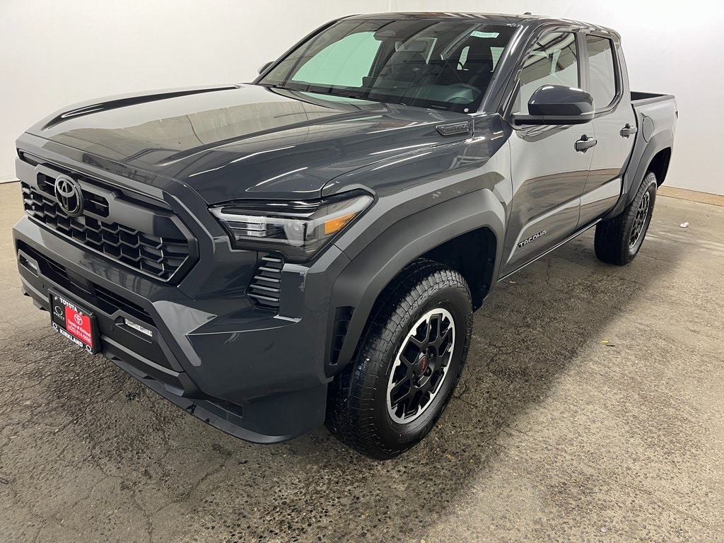 2.4L 4-Cylinder, 18" Alloy Wheels, 3.583 Axle Ratio, 4-Wheel Disc Brakes, 6 Speakers, 8-Way Power Driver and Passenger Seat Adjusters, ABS brakes, Air Conditioning, All Weather Floor Liners, Alloy wheels, AM/FM radio: SiriusXM, Anti-whiplash front head restraints, Apple CarPlay/Android Auto, Auto High-beam Headlights, Auto-dimming Rear-View mirror, Automatic temperature control, Bed Step, Black Badge Overlay, Black Tailgate Insert, Brake assist, Bumpers: body-color, Digital Key Capability, Driver door bin, Driver vanity mirror, Dual front impact airbags, Dual front side impact airbags, Electronic Stability Control, Emergency communication system: Safety Connect (up to 10-year trial subscription), Exterior Parking Camera Rear, Fabric Seat Trim, Four wheel independent suspension, Front and Rear Parking Assist with Automatic Braking, Front anti-roll bar, Front Bucket Seats, Front Center Armrest, Front fog lights, Front reading lights, Fully automatic headlights, Heated door mirrors, Illuminated entry, Integrated Trailer Brake Controller, JBL Premium Audio, Knee airbag, Leather Shift Knob, Leather steering wheel, Low tire pressure warning, Moon Roof, Multimedia Glass Screen Protector, Navigation system: Drive Connect Cloud Navigation (1-year trial subscription), Occupant sensing airbag, Outside temperature display, Overhead airbag, Overhead console, Panic alarm, Passenger door bin, Passenger vanity mirror, Power door mirrors, Power Horizontal Rear Window, Power steering, Power windows, Qi-Compatible Wireless Charging, Radio: 14" Toyota Audio Multimedia, Radio: 8" Toyota Audio Multimedia, Rear step bumper, Rear window defroster, Remote keyless entry, Security system, SofTex Seat Trim, Speed control, Speed-sensing steering, Split folding rear seat, Steering wheel mounted audio controls, Tachometer, Telescoping steering wheel, Tilt steering wheel, Traction control, TRD Off Road Upgrade Package, Trip computer, Turn signal indicator mirrors, Variably intermittent wipers, Wheel Locks, 2.4L 4-Cylinder.