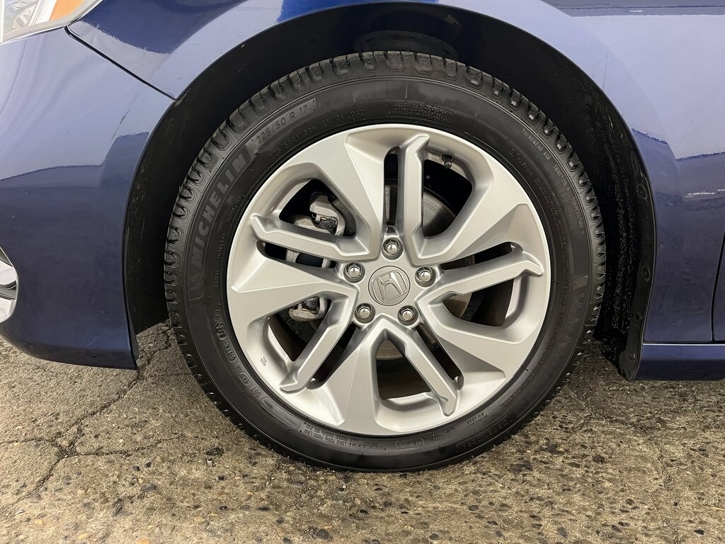 Gray Cloth, 4 Speakers, 4-Wheel Disc Brakes, ABS brakes, Adaptive Cruise Control: Adaptive Cruise Control (ACC) with Low-Speed Follow, Air Conditioning, Alloy wheels, AM/FM radio, Auto High-beam Headlights, Automatic temperature control, Brake assist, Bumpers: body-color, Cloth Seat Trim, Delay-off headlights, Driver door bin, Driver vanity mirror, Dual front impact airbags, Dual front side impact airbags, Electronic Stability Control, Exterior Parking Camera Rear, Forward collision: Collision Mitigation Braking System (CMBS) + FCW mitigation, Four wheel independent suspension, Front anti-roll bar, Front Bucket Seats, Front Center Armrest, Front dual zone A/C, Front reading lights, Fully automatic headlights, Illuminated entry, Knee airbag, Lane Departure Warning System, Low tire pressure warning, Occupant sensing airbag, Outside temperature display, Overhead airbag, Overhead console, Panic alarm, Passenger door bin, Passenger vanity mirror, Power door mirrors, Power steering, Power windows, Radio data system, Radio: 160-Watt AM/FM Audio System, Rear anti-roll bar, Rear seat center armrest, Rear window defroster, Remote keyless entry, Security system, Speed control, Speed-sensing steering, Speed-Sensitive Wipers, Steering wheel mounted audio controls, Tachometer, Telescoping steering wheel, Tilt steering wheel, Traction control, Trip computer, Variably intermittent wipers, Wheels: 17" Silver-Painted Alloy, Gray Cloth. Features: 2020 Honda Accord LX Navy FWD 1.5T I4 DOHC 16V Turbocharged VTEC CVT