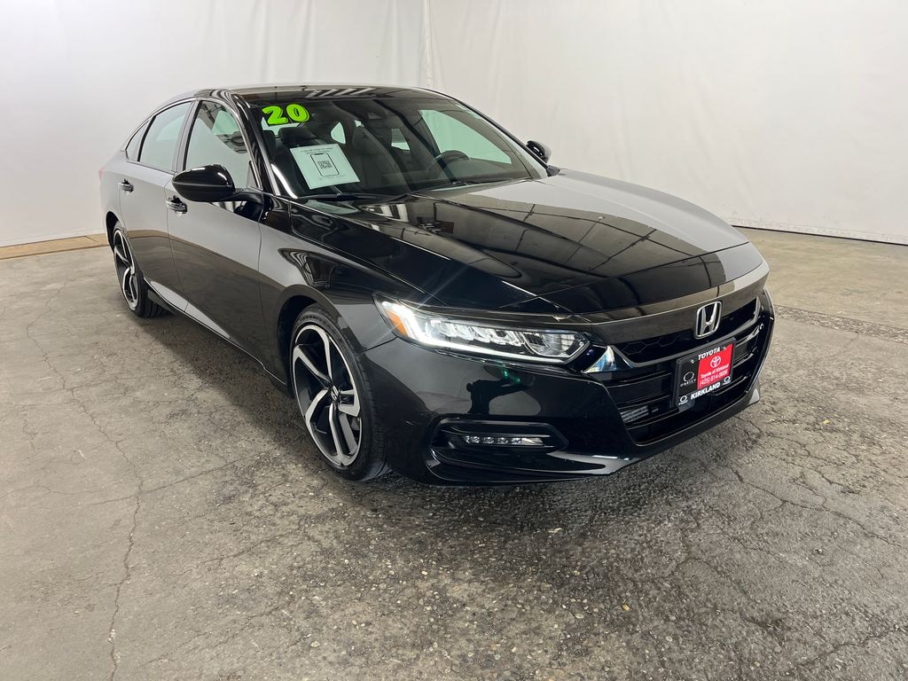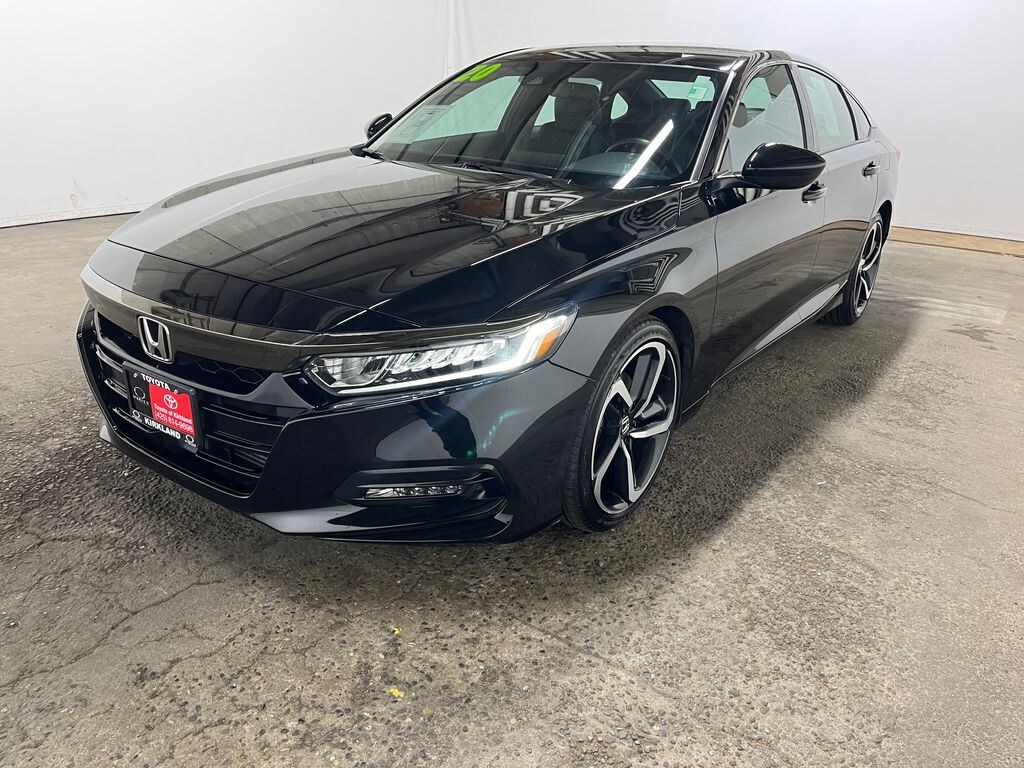 Black Cloth, 4-Wheel Disc Brakes, 8 Speakers, ABS brakes, Adaptive Cruise Control: Adaptive Cruise Control (ACC) with Low-Speed Follow, Air Conditioning, Alloy wheels, AM/FM radio, Apple CarPlay/Android Auto, Auto High-beam Headlights, Automatic temperature control, Brake assist, Bumpers: body-color, Cloth Seat Trim, Delay-off headlights, Driver door bin, Driver vanity mirror, Dual front impact airbags, Dual front side impact airbags, Electronic Stability Control, Emergency communication system: HondaLink, Exterior Parking Camera Rear, Forward collision: Collision Mitigation Braking System (CMBS) + FCW mitigation, Four wheel independent suspension, Front anti-roll bar, Front Bucket Seats, Front Center Armrest, Front dual zone A/C, Front fog lights, Front reading lights, Fully automatic headlights, Illuminated entry, Knee airbag, Lane Departure Warning System, Leather Shift Knob, Leather steering wheel, Low tire pressure warning, Occupant sensing airbag, Outside temperature display, Overhead airbag, Overhead console, Panic alarm, Passenger door bin, Passenger vanity mirror, Power door mirrors, Power driver seat, Power steering, Power windows, Radio data system, Radio: 180-Watt AM/FM Audio System, Rear anti-roll bar, Rear seat center armrest, Rear window defroster, Remote keyless entry, Security system, Speed control, Speed-sensing steering, Speed-Sensitive Wipers, Split folding rear seat, Spoiler, Steering wheel mounted audio controls, Tachometer, Telescoping steering wheel, Tilt steering wheel, Traction control, Trip computer, Variably intermittent wipers, Wheels: 19" Machine-Finished Alloy w/Black Inserts, Black Cloth. Features: 2020 Honda Accord Sport Black FWD 1.5T I4 DOHC 16V Turbocharged VTEC CVT