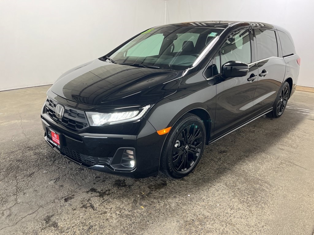 3rd row seats: split-bench, 4-Wheel Disc Brakes, 7 Speakers, ABS brakes, Adaptive Cruise Control: Adaptive Cruise Control (ACC) with Low-Speed Follow, Air Conditioning, Alloy wheels, AM/FM radio: SiriusXM, Anti-whiplash front head restraints, Apple CarPlay/Android Auto, Auto High-beam Headlights, Auto-dimming Rear-View mirror, Automatic temperature control, Blind Spot Information (BSI) System warning, Brake assist, Bumpers: body-color, Delay-off headlights, Driver door bin, Driver vanity mirror, Driver's Seat Mounted Armrest, Dual front impact airbags, Dual front side impact airbags, Electronic Stability Control, Exterior Parking Camera Rear, Four wheel independent suspension, Front anti-roll bar, Front Bucket Seats, Front dual zone A/C, Front fog lights, Front reading lights, Fully automatic headlights, Garage door transmitter: HomeLink, Heated door mirrors, Heated Front Bucket Seats, Heated front seats, Illuminated entry, Knee airbag, Lane departure: Lane Keeping Assist System (LKAS) active, Leather steering wheel, Leather Trimmed Seats, Low tire pressure warning, Memory seat, Occupant sensing airbag, Outside temperature display, Overhead airbag, Overhead console, Panic alarm, Passenger door bin, Passenger seat mounted armrest, Passenger vanity mirror, Power door mirrors, Power driver seat, Power Liftgate, Power moonroof, Power passenger seat, Power steering, Power windows, Radio data system, Radio: 160-Watt AM/FM/HD/SiriusXM Audio System, Rear air conditioning, Rear anti-roll bar, Rear reading lights, Rear seat center armrest, Rear window defroster, Rear window wiper, Reclining 3rd row seat, Remote keyless entry, Security system, Speed control, Speed-sensing steering, Speed-Sensitive Wipers, Split folding rear seat, Spoiler, Steering wheel mounted audio controls, Tachometer, Telescoping steering wheel, Tilt steering wheel, Traction control, Trip computer, Turn signal indicator mirrors, Variably intermittent wipers, Wheels: 19" Gloss Black Alloy. Features: 2025 Honda Odyssey Sport-L Black FWD 3.5L V6 SOHC i-VTEC 24V 10-Speed Automatic