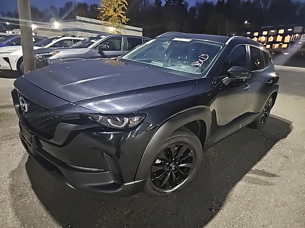 4-Wheel Disc Brakes, 4.367 Axle Ratio, 8 Speakers, ABS brakes, Air Conditioning, Alloy wheels, AM/FM radio, AppLink/Apple CarPlay and Android Auto, Auto High-beam Headlights, Automatic temperature control, Brake assist, Bumpers: body-color, Delay-off headlights, Driver door bin, Driver vanity mirror, Dual front impact airbags, Dual front side impact airbags, Electronic Stability Control, Emergency communication system: MAZDA CONNECT, Exterior Parking Camera Rear, Front anti-roll bar, Front Bucket Seats, Front Center Armrest, Front dual zone A/C, Front reading lights, Front wheel independent suspension, Fully automatic headlights, Half Leatherette Seat Trim, Heated door mirrors, Heated Front Bucket Seats, Heated front seats, Illuminated entry, Knee airbag, Leather Shift Knob, Leather steering wheel, Low tire pressure warning, Occupant sensing airbag, Outside temperature display, Overhead airbag, Overhead console, Panic alarm, Passenger door bin, Passenger vanity mirror, Power door mirrors, Power driver seat, Power Liftgate, Power steering, Power windows, Radio data system, Radio: AM/FM/HD Audio System, Rain sensing wipers, Rear seat center armrest, Rear window defroster, Rear window wiper, Remote keyless entry, Speed control, Speed-sensing steering, Split folding rear seat, Spoiler, Steering wheel mounted audio controls, Tachometer, Telescoping steering wheel, Tilt steering wheel, Traction control, Trip computer, Turn signal indicator mirrors, Variably intermittent wipers, Wheels: 17" x 7J Aluminum Alloy. Features: 2024 Mazda CX-50 2.5 S Preferred Package Jet Black AWD SKYACTIV® 2.5L 4-Cylinder DOHC 16V 6-Speed Automatic