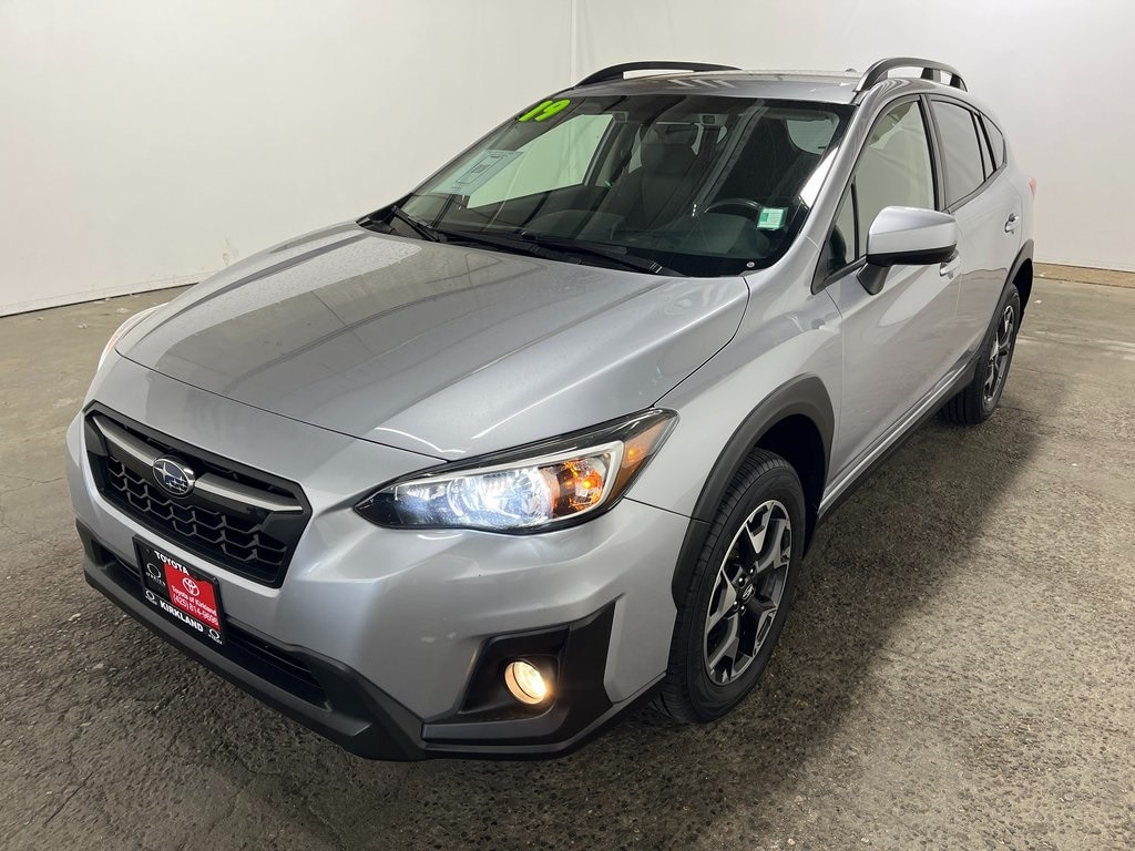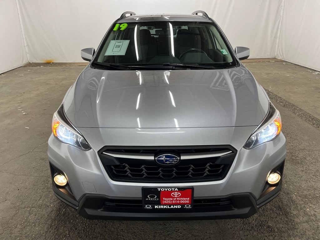 17" Alloy Wheels, 3.90 Axle Ratio, 4-Wheel Disc Brakes, 6 Speakers, ABS brakes, Air Conditioning, All-Weather Floor Liners, Alloy wheels, AM/FM radio: SiriusXM, Auto-Dimming Mirror w/Compass & HomeLink, Blind Spot Detection/Rear Cross Traffic Alert, Brake assist, Bumpers: body-color, CD player, Cloth Upholstery, Driver door bin, Driver vanity mirror, Dual front impact airbags, Dual front side impact airbags, Electronic Stability Control, Emergency communication system: STARLINK Safety and Security, Exterior Parking Camera Rear, EyeSight System, Four wheel independent suspension, Front anti-roll bar, Front Bucket Seats, Front Center Armrest, Front fog lights, Front reading lights, Fully automatic headlights, Heated door mirrors, Heated Front Bucket Seats, Heated front seats, High Grade Instrument Cluster w/Color LCD Display, Illuminated entry, Knee airbag, Leather Shift Knob, Low tire pressure warning, Occupant sensing airbag, Outside temperature display, Overhead airbag, Overhead console, Overhead Console Shower Light, Panic alarm, Passenger door bin, Passenger vanity mirror, Popular Package #2, Power door mirrors, Power steering, Power windows, Radio data system, Radio: Subaru Starlink 6.5" Multimedia Plus System, Rear anti-roll bar, Rear Bumper Cover, Rear Seat Back Protector, Rear window defroster, Rear window wiper, Remote keyless entry, Roof rack: rails only, Security system, Speed control, Speed-sensing steering, Splash Guards, Split folding rear seat, Spoiler, STARLINK/Apple CarPlay/Android Auto, Steering Responsive Fog Lights, Steering wheel mounted audio controls, Subaru Starlink Smartphone Integration, Tachometer, Telescoping steering wheel, Tilt steering wheel, Tire Pressure Monitoring System, Traction control, Trip computer, Variably intermittent wipers. Features: 2019 Subaru Crosstrek 2.0i Premium Ice Silver Metallic AWD 2.0L DOHC Lineartronic CVT