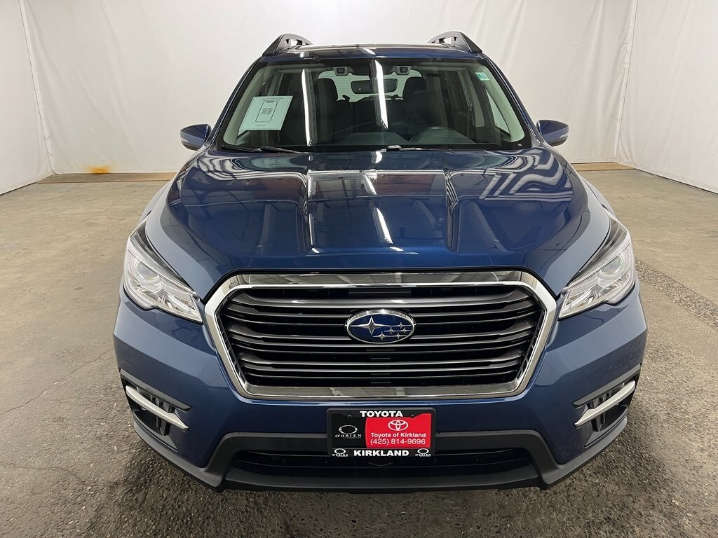 3rd row seats: bench, 4-Wheel Disc Brakes, 6 Speakers, ABS brakes, Abyss Blue Pearl Door Edge Guards (DISC), Air Conditioning, All-Weather Floor Liners, Alloy wheels, AM/FM radio: SiriusXM, Auto High-beam Headlights, Auto-Dimming Exterior Mirror w/Approach Light, Auto-dimming Rear-View mirror, Automatic temperature control, Axle Ratio: 4.44, Brake assist, Bumpers: body-color, Cargo Area Cover, Cargo Net, CD player, Compass, Delay-off headlights, Driver door bin, Driver vanity mirror, Dual front impact airbags, Dual front side impact airbags, Dual Glass Panoramic Power Moonroof, Electronic Stability Control, Emergency communication system: STARLINK Safety and Security (Subscription Required), Exterior Parking Camera Rear, Four wheel independent suspension, Front anti-roll bar, Front Bucket Seats, Front Center Armrest, Front dual zone A/C, Front fog lights, Front reading lights, Fully automatic headlights, Garage door transmitter: HomeLink, Heated door mirrors, Heated Front Bucket Seats, Heated front seats, Heated rear seats, Heated steering wheel, Illuminated entry, Knee airbag, Low tire pressure warning, Map & Reading Lights LED Upgrade - 6 Bulb Kit, Memory seat, Occupant sensing airbag, Outside temperature display, Overhead airbag, Overhead console, Panic alarm, Passenger door bin, Passenger vanity mirror, Perforated Leather-Trimmed Upholstery, Power door mirrors, Power driver seat, Power Liftgate, Power passenger seat, Power steering, Power windows, Radio data system, Radio: Subaru STARLINK 8.0" Multimedia Nav System, Radio: Subaru STARLINK 8.0" Multimedia Plus System, Rear air conditioning, Rear anti-roll bar, Rear Bumper Cover, Rear reading lights, Rear window defroster, Rear window wiper, Reclining 3rd row seat, Remote keyless entry, Security system, Speed control, Split folding rear seat, Spoiler, STARLINK/Apple CarPlay/Android Auto, Steering wheel mounted audio controls, Tachometer, Technology Package, Telescoping steering wheel, Tilt steering wheel, Traction control, Trip computer, Turn signal indicator mirrors, Variably intermittent wipers, Wheels: 20" x 7.5 J Dk Gray Alloy w/Machine Finish. Features: 2022 Subaru Ascent Limited Abyss Blue Pearl AWD 2.4L 4-Cylinder DOHC 16V Lineartronic CVT