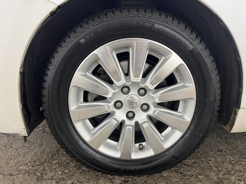 3rd row seats: split-bench, 4-Wheel Disc Brakes, ABS brakes, Air Conditioning, Alloy wheels, Axle Ratio: 3.935, Brake assist, Bumpers: body-color, CD player, Delay-off headlights, Driver door bin, Driver vanity mirror, Driver's Seat Mounted Armrest, Dual front impact airbags, Dual front side impact airbags, Electronic Stability Control, Front anti-roll bar, Front Bucket Seats, Front dual zone A/C, Front reading lights, Front wheel independent suspension, Illuminated entry, Knee airbag, Low tire pressure warning, Occupant sensing airbag, Overhead airbag, Overhead console, Panic alarm, Passenger door bin, Passenger seat mounted armrest, Passenger vanity mirror, Power door mirrors, Power steering, Power windows, Radio data system, Rear air conditioning, Rear anti-roll bar, Rear reading lights, Rear window defroster, Rear window wiper, Reclining 3rd row seat, Remote keyless entry, Speed control, Speed-sensing steering, Split folding rear seat, Spoiler, Tachometer, Telescoping steering wheel, Tilt steering wheel, Traction control, Variably intermittent wipers. Features: 2014 Toyota Sienna Limited Blizzard Pearl FWD 3.5L V6 SMPI DOHC 6-Speed Automatic Electronic with Overdrive