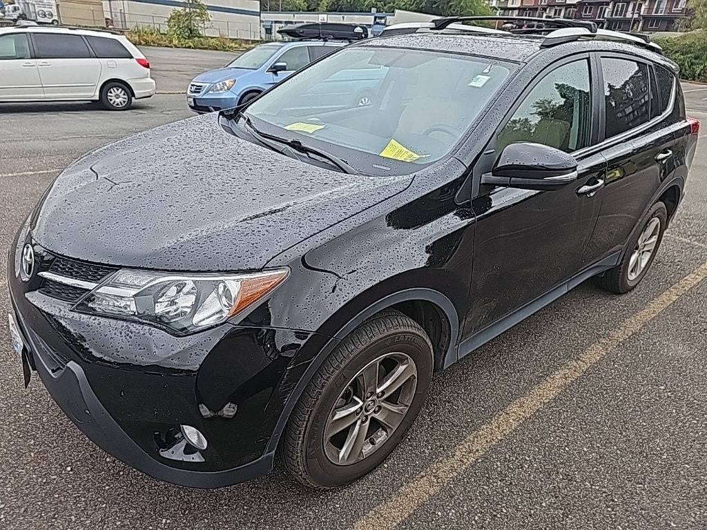 AWD, Latte Cloth, 4-Wheel Disc Brakes, 4.071 Axle Ratio, 6 Speakers, ABS brakes, Air Conditioning, All Weather Floor Mats & Cargo Tray, Alloy wheels, AM/FM radio: SiriusXM, Automatic temperature control, Brake assist, Bumpers: body-color, CD player, Chrome wheels, Driver door bin, Driver vanity mirror, Dual front impact airbags, Dual front side impact airbags, Electronic Stability Control, Exterior Parking Camera Rear, Fabric Seat Trim, Four wheel independent suspension, Front anti-roll bar, Front Bucket Seats, Front Center Armrest, Front dual zone A/C, Front fog lights, Front reading lights, Front Sport Seats, Heated door mirrors, Illuminated entry, Knee airbag, Low tire pressure warning, Occupant sensing airbag, Outside temperature display, Overhead airbag, Overhead console, Panic alarm, Passenger door bin, Passenger vanity mirror, Power door mirrors, Power moonroof, Power steering, Power windows, Radio data system, Radio: Entune Audio Plus AM/FM/CD/MP3/WMA Playback, Rear anti-roll bar, Rear seat center armrest, Rear window defroster, Rear window wiper, Remote keyless entry, Roof Rack Cross Bars, Roof rack: rails only, Speed control, Speed-sensing steering, Split folding rear seat, Spoiler, Steering wheel mounted audio controls, Tachometer, Telescoping steering wheel, Tilt steering wheel, Traction control, Trip computer, Turn signal indicator mirrors, Variably intermittent wipers, Wheels: 17" x 7.0J 5-Spoke Superchrome Alloy, AWD, Latte Cloth. Features: 2015 Toyota RAV4 XLE Black AWD 2.5L 4-Cylinder DOHC Dual VVT-i 6-Speed Automatic
