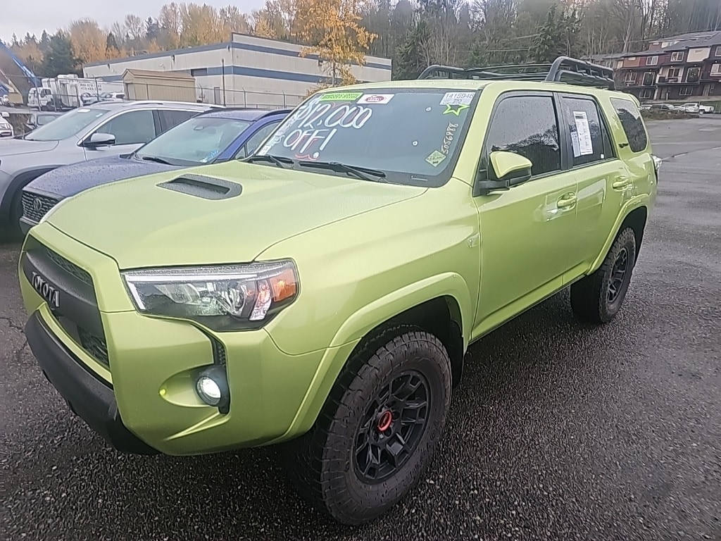 4WD, Graphite Artificial Leather, 15 Speakers, 3.727 Axle Ratio, 4-Wheel Disc Brakes, ABS brakes, Air Conditioning, Alloy wheels, AM/FM radio: SiriusXM, Anti-whiplash front head restraints, Apple CarPlay/Android Auto, Auto High-beam Headlights, Auto-dimming Rear-View mirror, Automatic temperature control, Black Lug Nuts, Blackout Emblem Overlays (PPO) (TMS), Blind Spot Monitor (BSM), Brake assist, Bumpers: body-color, Cargo Cover (PPO) (TMS), Compass, Driver door bin, Driver vanity mirror, Dual front impact airbags, Dual front side impact airbags, Dual Zone Auto Climate Control, Electronic Stability Control, Emergency communication system: Safety Connect with 1-year trial, Fog Lights, Fox Shocks, Front anti-roll bar, Front Bucket Seats, Front Center Armrest, Front Dual USB Power Port Charger (TMS), Front dual zone A/C, Front fog lights, Front reading lights, Front wheel independent suspension, Garage Door Opener, Garage door transmitter: HomeLink, Heated door mirrors, Heated Front Bucket Seats, Heated front seats, Illuminated entry, Knee airbag, Leather Shift Knob, Low tire pressure warning, Multi-Terrain Back Monitor, Navigation System, Occupant sensing airbag, Outside Rear View Mirror, Outside temperature display, Overhead airbag, Overhead console, Panic alarm, Passenger door bin, Passenger vanity mirror, Power door mirrors, Power driver seat, Power moonroof, Power passenger seat, Power steering, Power Tilt & Slide Moonroof w/Sunshade, Power windows, Predator Tube Step (PPO) (TMS), Preferred Owner's Portfolio (PPO) (TMS), Radio: Premium Audio w/JBL, Rear anti-roll bar, Rear seat center armrest, Rear window defroster, Rear window wiper, Remote keyless entry, Roof rack, Roof Rack, Security system, SofTex Seat Trim, Speed control, Speed-sensing steering, Split folding rear seat, Spoiler, Steering wheel mounted audio controls, Tachometer, Telescoping steering wheel, Tilt steering wheel, Traction control, TRD Badging, TRD Pro All Weather Floor Liner, TRD Pro Exhaust, TRD Pro Package, TRD Shift Knob, Trip computer, Turn signal indicator mirrors, Variably intermittent wipers, Wheel Locks, Wheels: 17" Matte Black Flow-Formed TRD Alloy, 4WD, Graphite Artificial Leather. Features: 2022 Toyota 4Runner TRD Pro Lime 4WD 4.0L V6 DOHC 24V 5-Speed with ECT
