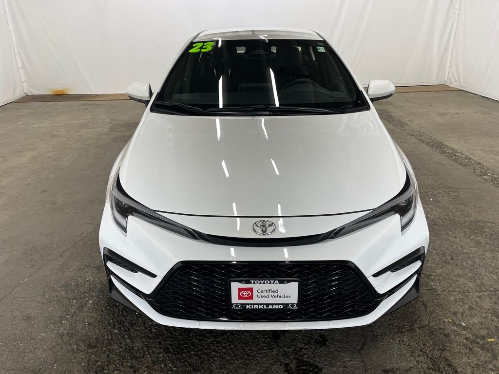 Toyota Gold Certified Certified, 4-Wheel Disc Brakes, 6 Speakers, ABS brakes, Air Conditioning, All Weather Floor Liner Package (TMS), Alloy wheels, AM/FM radio: SiriusXM, Auto High-beam Headlights, Automatic temperature control, Brake assist, Bumpers: body-color, Delay-off headlights, Driver door bin, Driver vanity mirror, Dual front impact airbags, Dual front side impact airbags, Electronic Stability Control, Emergency communication system: Safety Connect (up to 10-year trial subscription), Exterior Parking Camera Rear, Four wheel independent suspension, Front anti-roll bar, Front Bucket Seats, Front Center Armrest, Front reading lights, Front Sport Seats, Fully automatic headlights, Heated door mirrors, Illuminated entry, Knee airbag, Leather steering wheel, Low tire pressure warning, Occupant sensing airbag, Outside temperature display, Overhead airbag, Panic alarm, Passenger door bin, Passenger vanity mirror, Power door mirrors, Power steering, Power windows, Premium Seat Trim, Radio data system, Radio: 8" Toyota Audio Multimedia, Rear anti-roll bar, Rear seat center armrest, Rear side impact airbag, Rear window defroster, Remote keyless entry, Speed control, Split folding rear seat, Spoiler, Steering wheel mounted audio controls, Tachometer, Telescoping steering wheel, Tilt steering wheel, Traction control, Trip computer, Turn signal indicator mirrors, Variably intermittent wipers, Wheels: 18" Alloy w/Graphite Finish. Features: 2023 Toyota Corolla SE Ice FWD 2.0L I4 DOHC 16V CVT