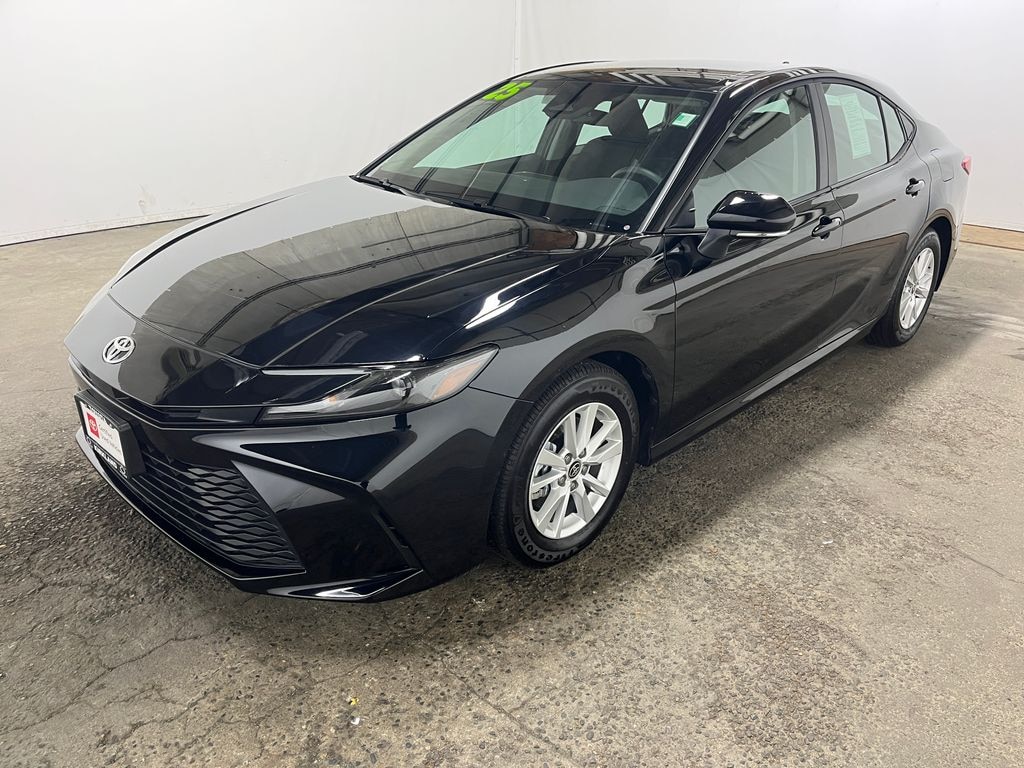 Toyota Gold Certified Certified, 2.5L 4-Cylinder 16V DOHC, Black Cloth, 4-Wheel Disc Brakes, 6 Speakers, ABS brakes, Air Conditioning, All Weather Floor Protection (TMS), Alloy wheels, AM/FM radio: SiriusXM, Apple CarPlay/Android Auto, Auto High-beam Headlights, Automatic temperature control, Brake assist, Bumpers: body-color, Delay-off headlights, Driver door bin, Driver vanity mirror, Dual front impact airbags, Dual front side impact airbags, Electronic Stability Control, Emergency communication system: Safety Connect (up to 10-year trial subscription), Exterior Parking Camera Rear, Fabric Seat Trim, Four wheel independent suspension, Front anti-roll bar, Front Bucket Seats, Front Center Armrest, Front dual zone A/C, Front reading lights, Fully automatic headlights, Heated door mirrors, Illuminated entry, Knee airbag, Low tire pressure warning, Occupant sensing airbag, Outside temperature display, Overhead airbag, Overhead console, Paint Protection Film (TMS), Panic alarm, Passenger door bin, Passenger vanity mirror, Power door mirrors, Power steering, Power windows, Quick Charge Cables (TMS), Radio data system, Radio: Toyota Audio Multimedia w/8" Touchscreen, Rear anti-roll bar, Rear Bumper Applique (TMS), Rear seat center armrest, Rear side impact airbag, Rear window defroster, Remote keyless entry, Security system, Speed control, Speed-sensing steering, Split folding rear seat, Steering wheel mounted audio controls, Telescoping steering wheel, Tilt steering wheel, Traction control, Trip computer, Trunk LED Bulb (TMS), Turn signal indicator mirrors, Variably intermittent wipers, Wheels: 16" Silver-Finished Alloy, 2.5L 4-Cylinder 16V DOHC, Black Cloth. Features: 2025 Toyota Camry LE Midnight Black Metallic FWD 2.5L 4-Cylinder 16V DOHC eCVT